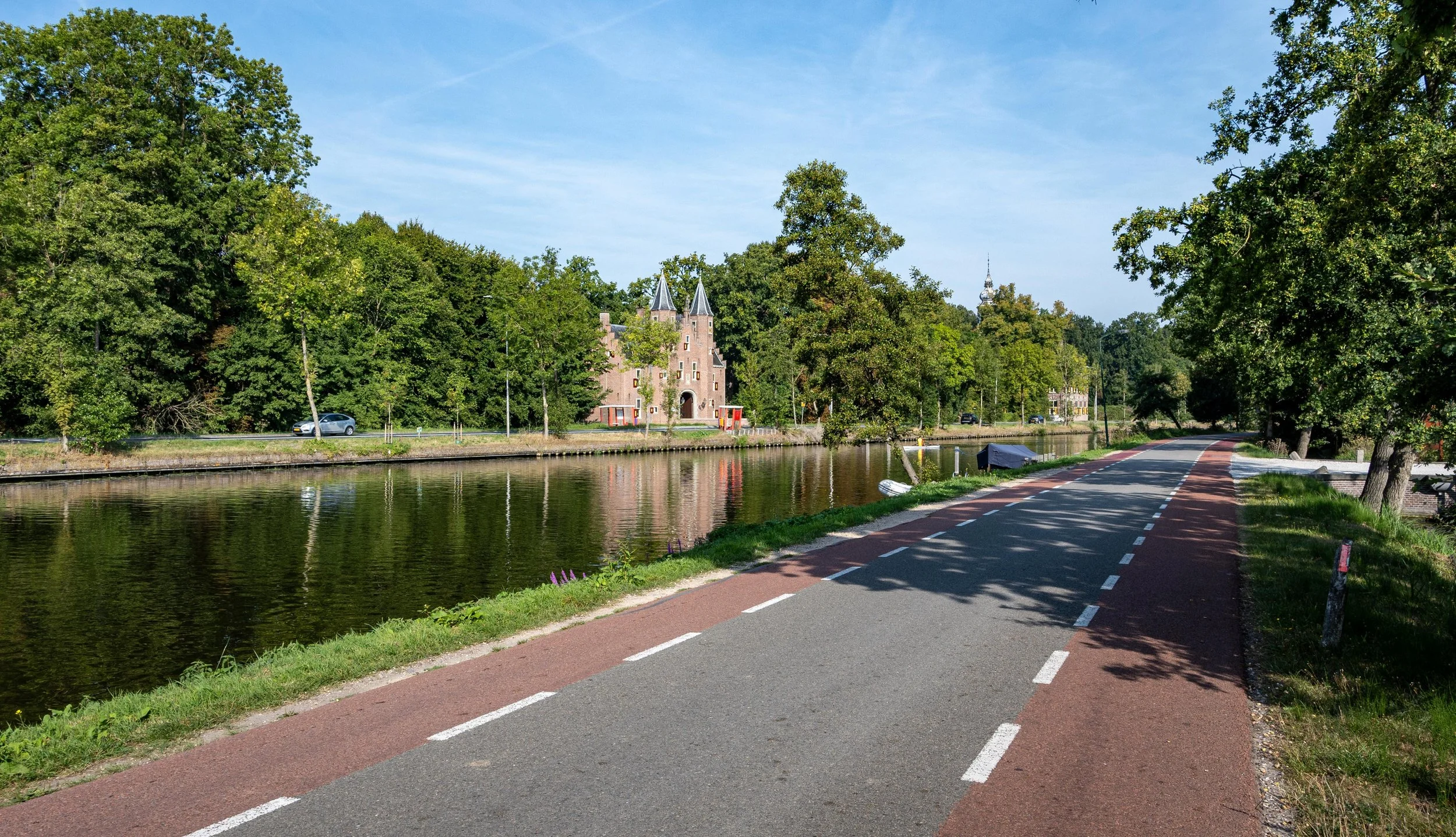 Bike path under aqueduct (water bridge for boats), Netherlands